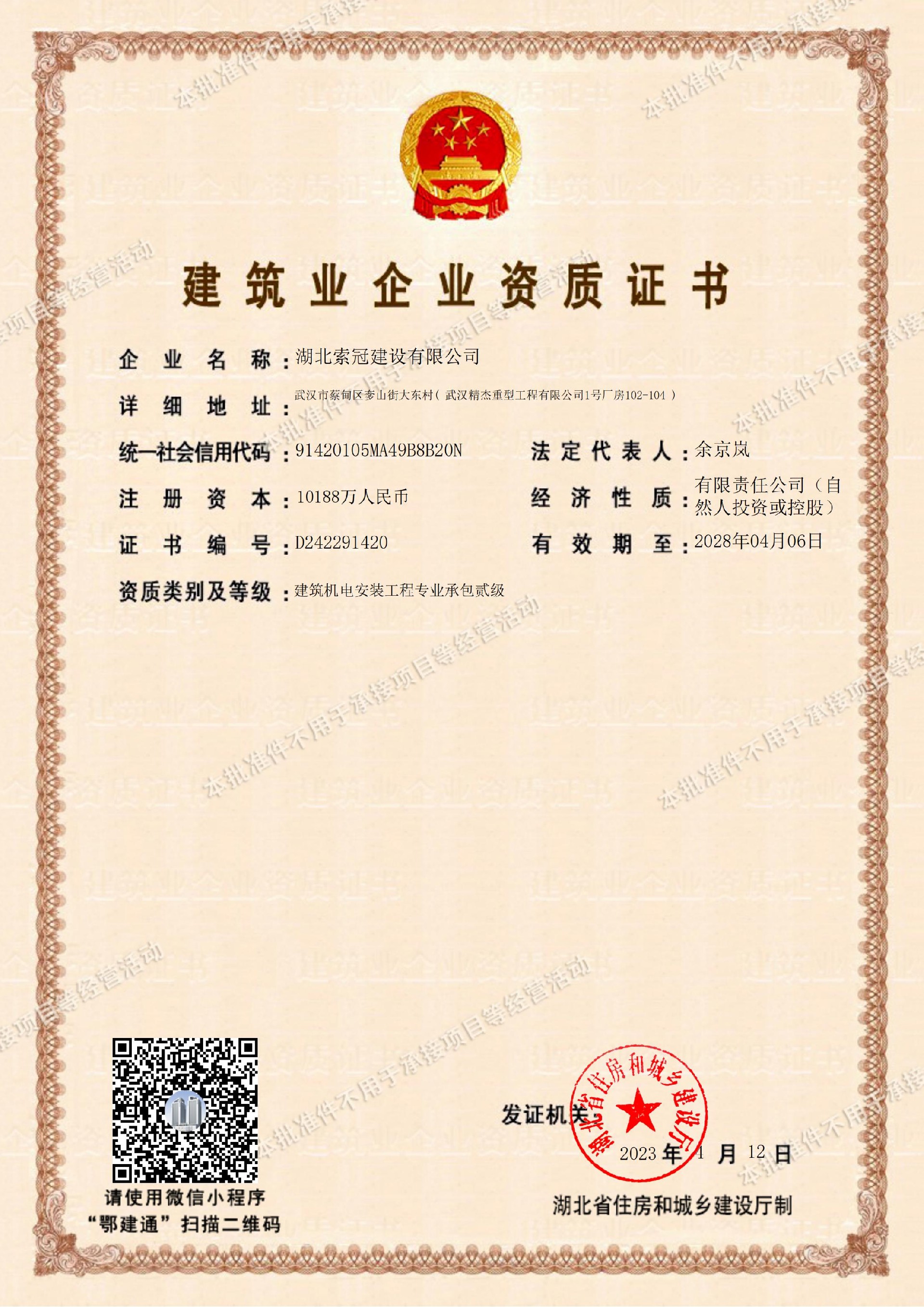 索冠建筑资质证书