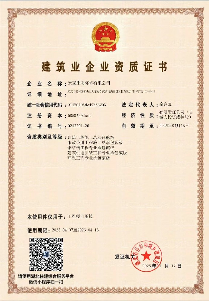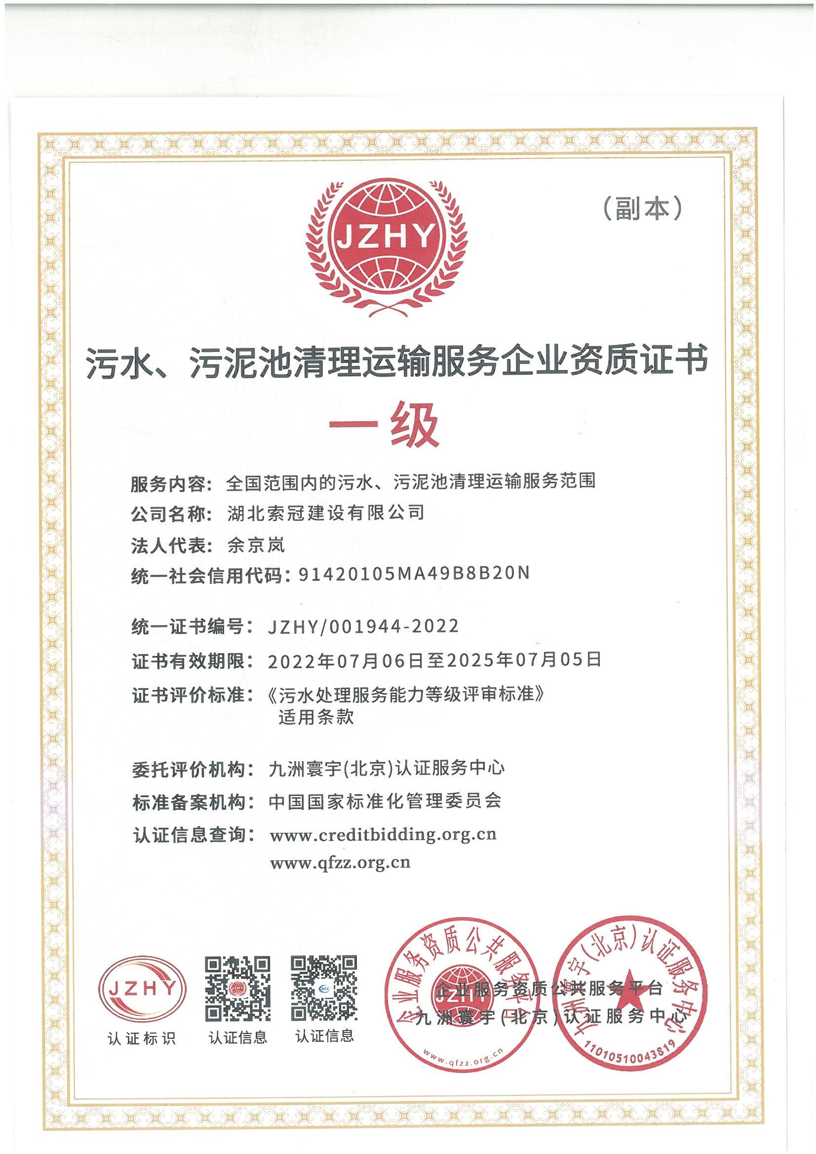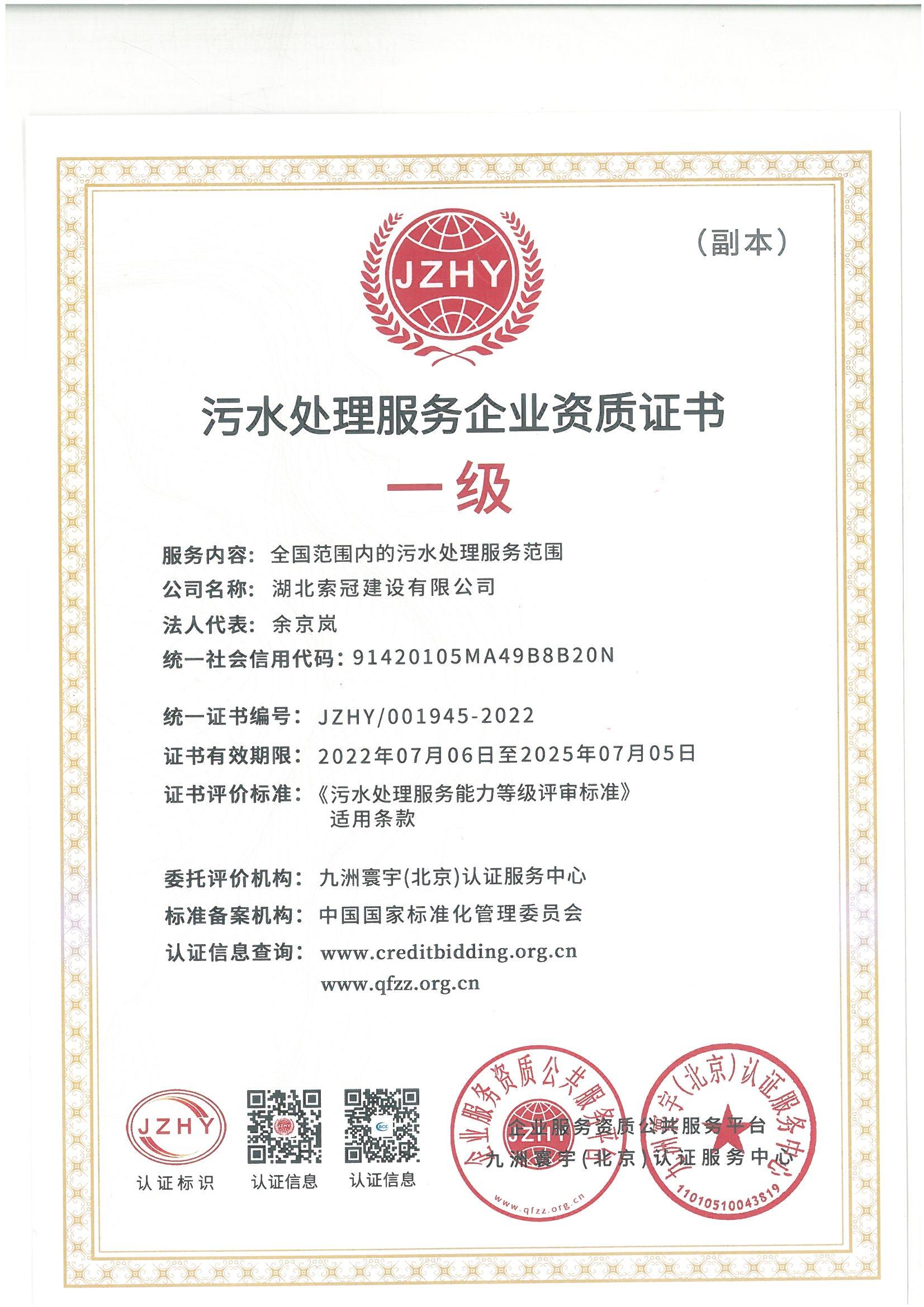 索冠污水处理资质证书