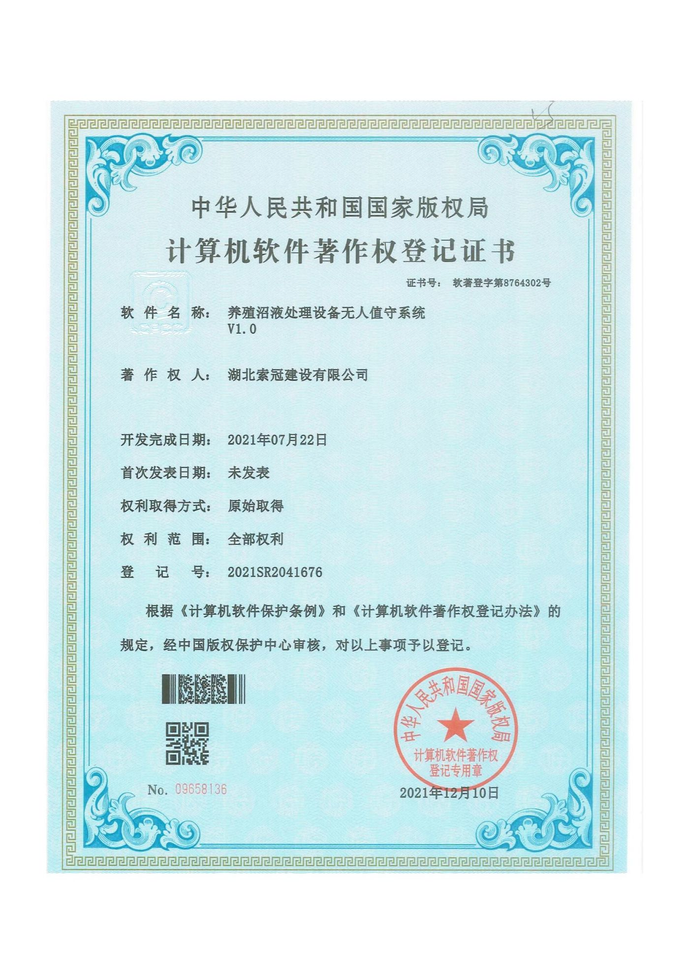 计算机软件著作权登记证书